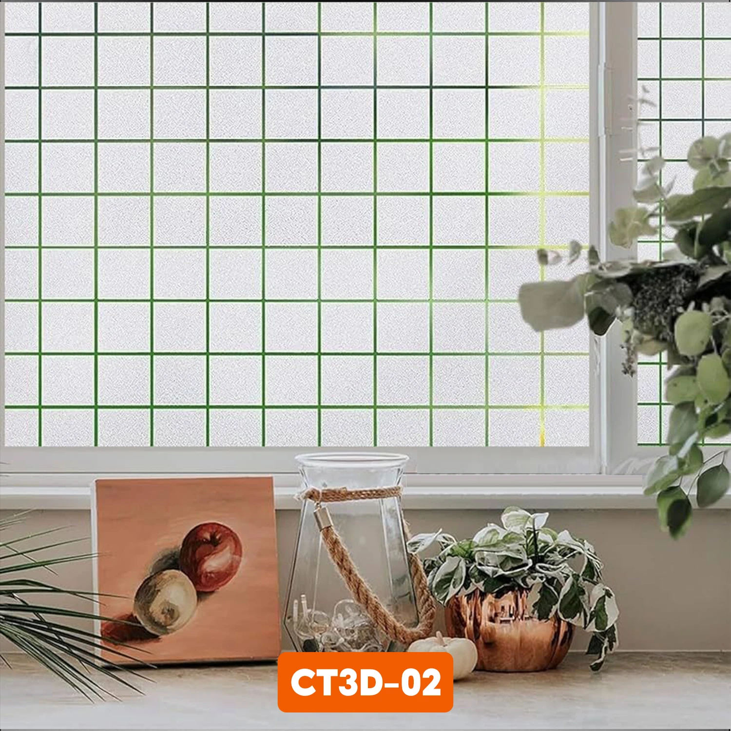 Decal dán kính trang trí mã CT3D-02 họa tiết ô vuông caro