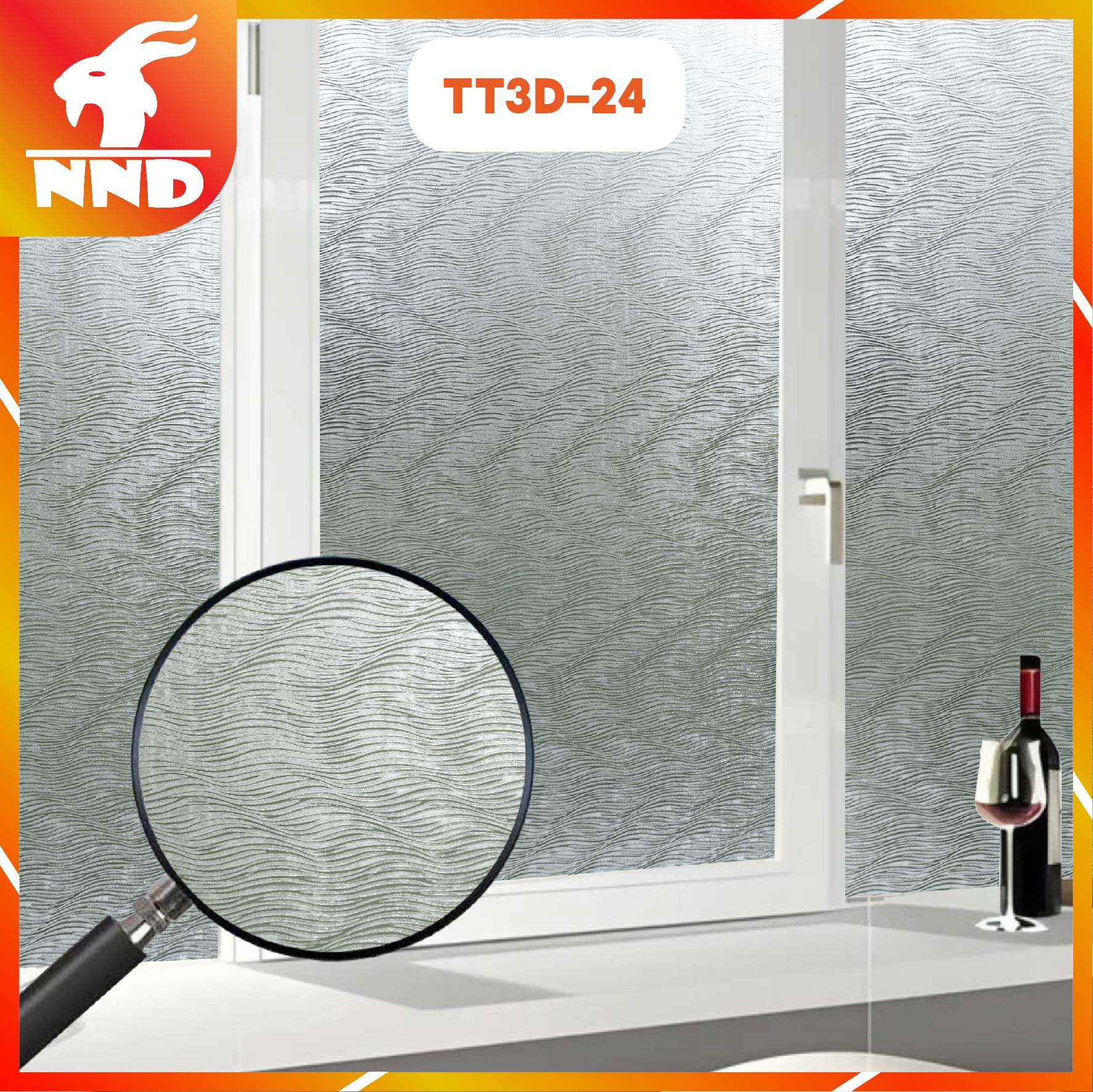 Mẫu decal dán kính TT3D-24 mang vẻ đẹp thanh thoát với họa tiết những đường sóng nước uốn lượn mượt mà. Đây là giải pháp trang trí lý tưởng cho những không gian cần sự nhẹ nhàng, thư giãn nhưng vẫn giữ được nét hiện đại và sang trọng.