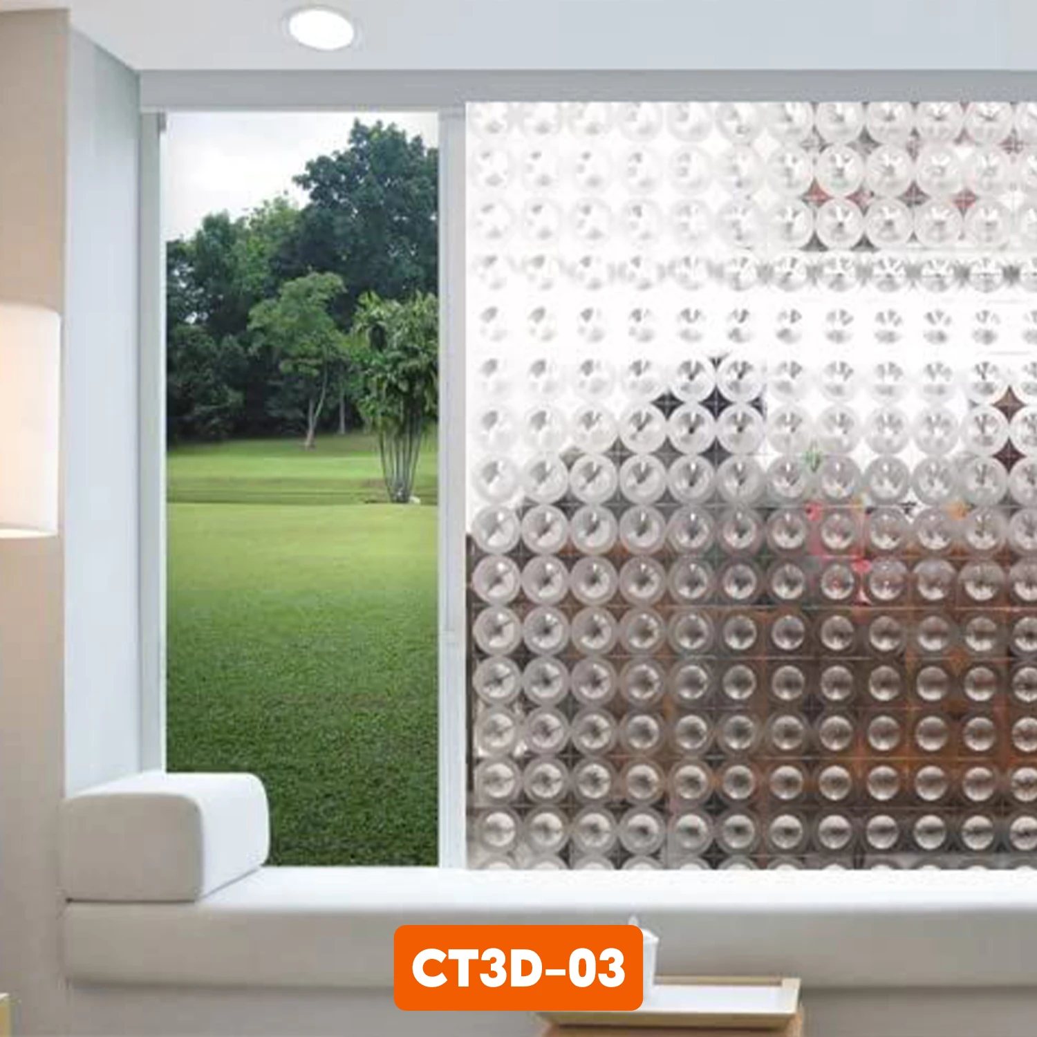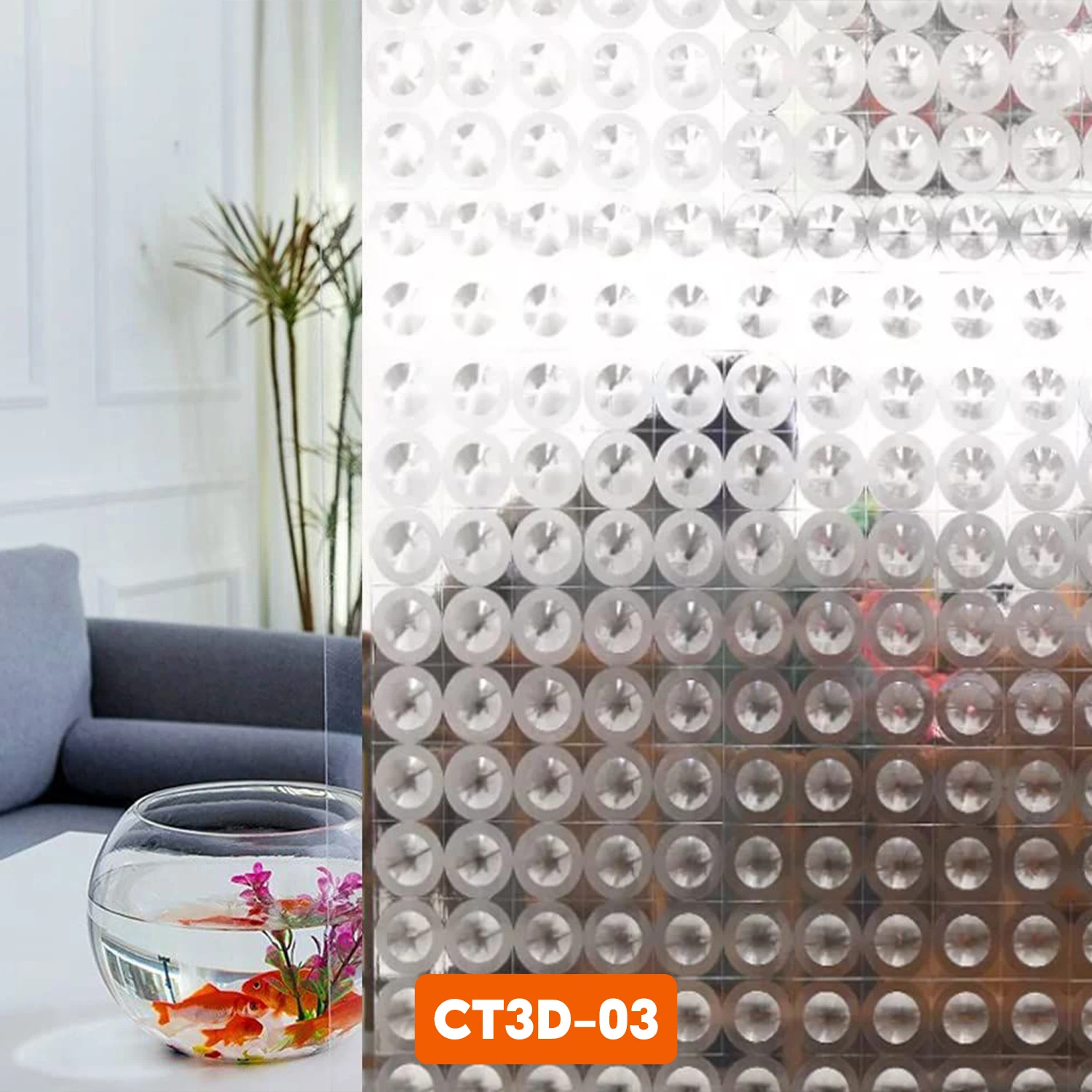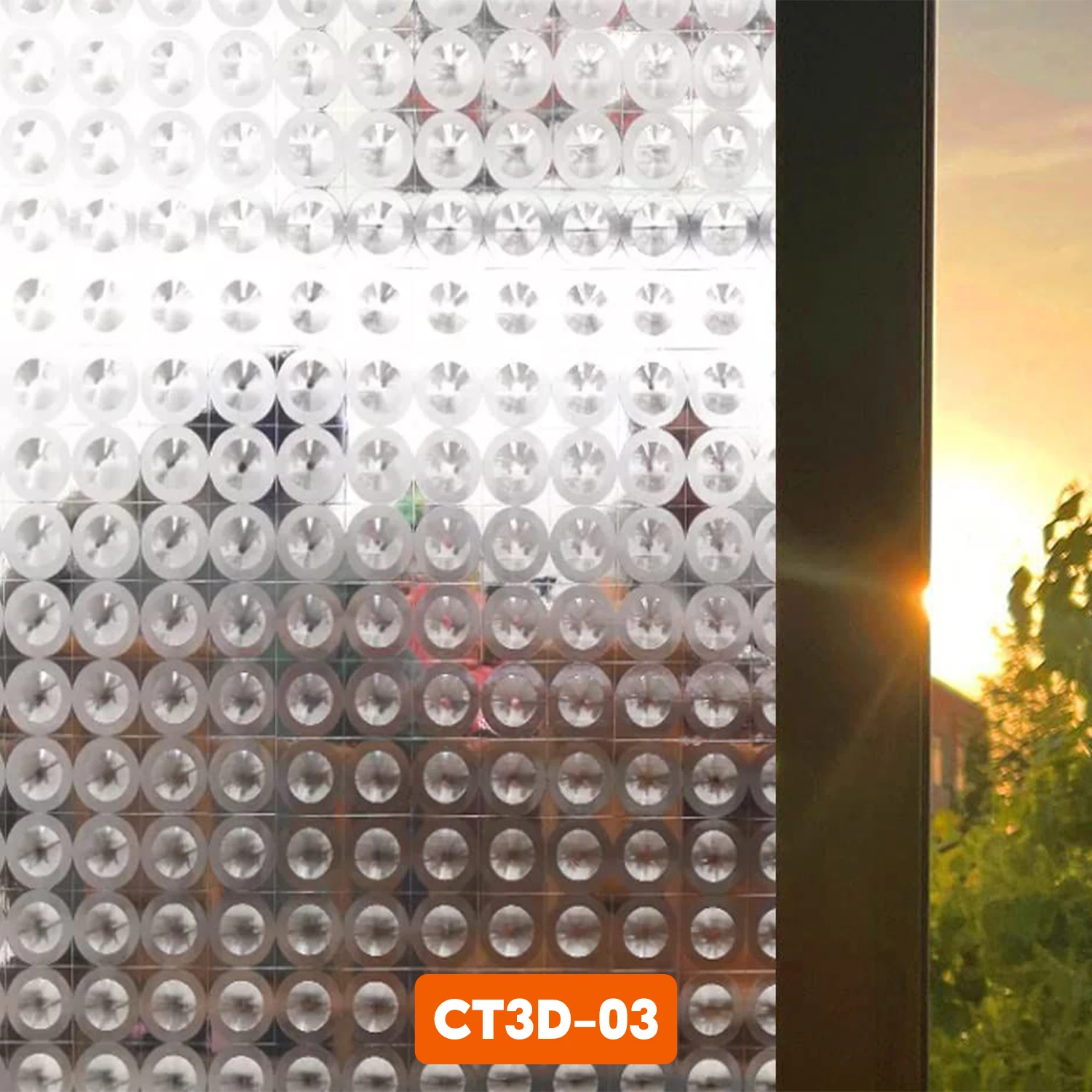 Nếu bạn đang tìm kiếm một sự đột phá trong trang trí cửa kính thì mẫu decal dán kính 3D mã CT3D-03 chính là câu trả lời hoàn hảo. Với họa tiết các hình tròn 3D xếp lớp tinh xảo, sản phẩm mang đến một diện mạo hoàn toàn mới, vừa hiện đại, vừa có chiều sâu nghệ thuật. Đây là giải pháp trang trí lý tưởng để biến những bức tường kính vô hồn thành những tác phẩm thị giác đầy lôi cuốn cho ngôi nhà của bạn.