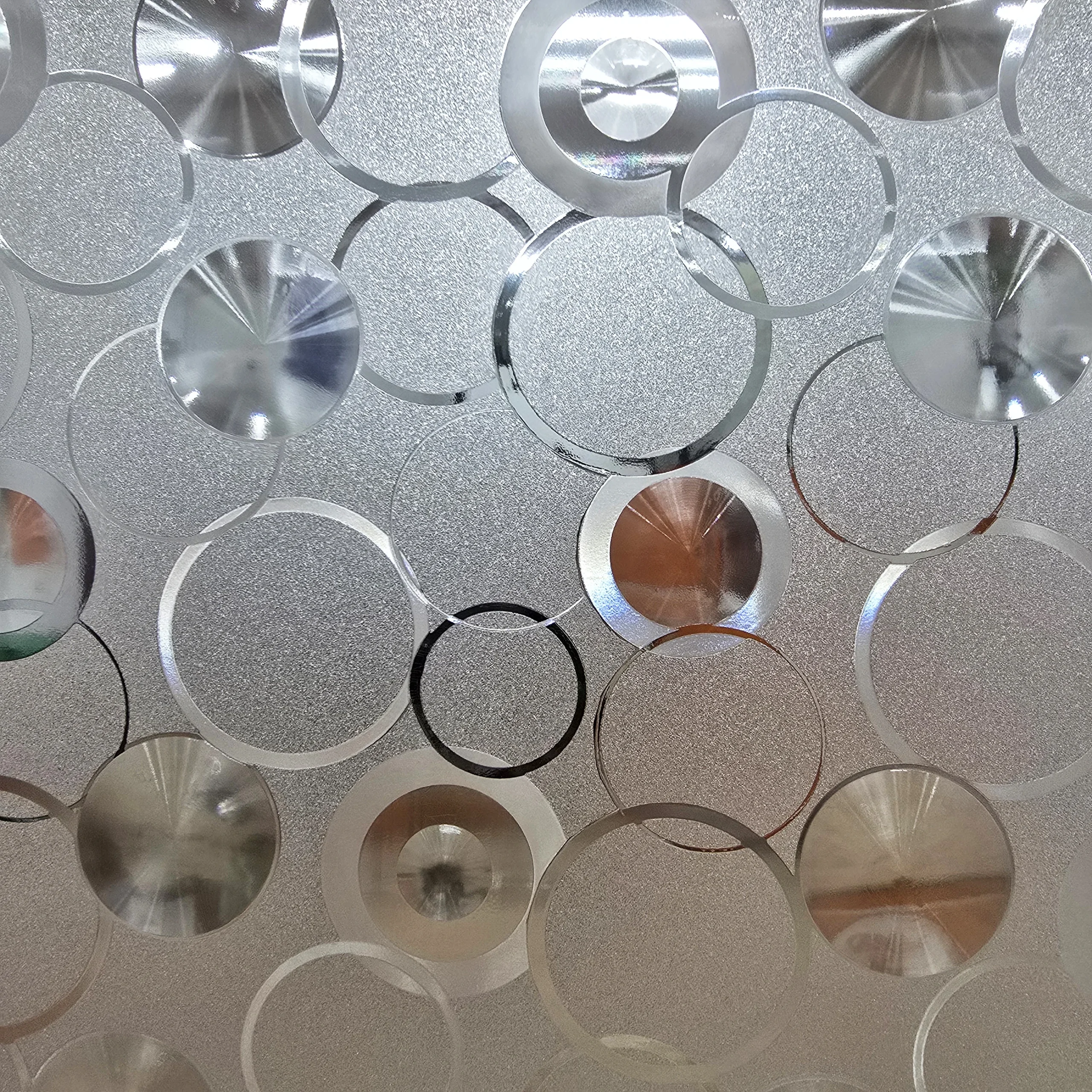 - Họa tiết vòng tròn đan xen: Các vòng tròn với đường nét mảnh và dày khác nhau được sắp xếp ngẫu nhiên, tạo hiệu ứng chuyển động và chiều sâu cho bề mặt kính.
