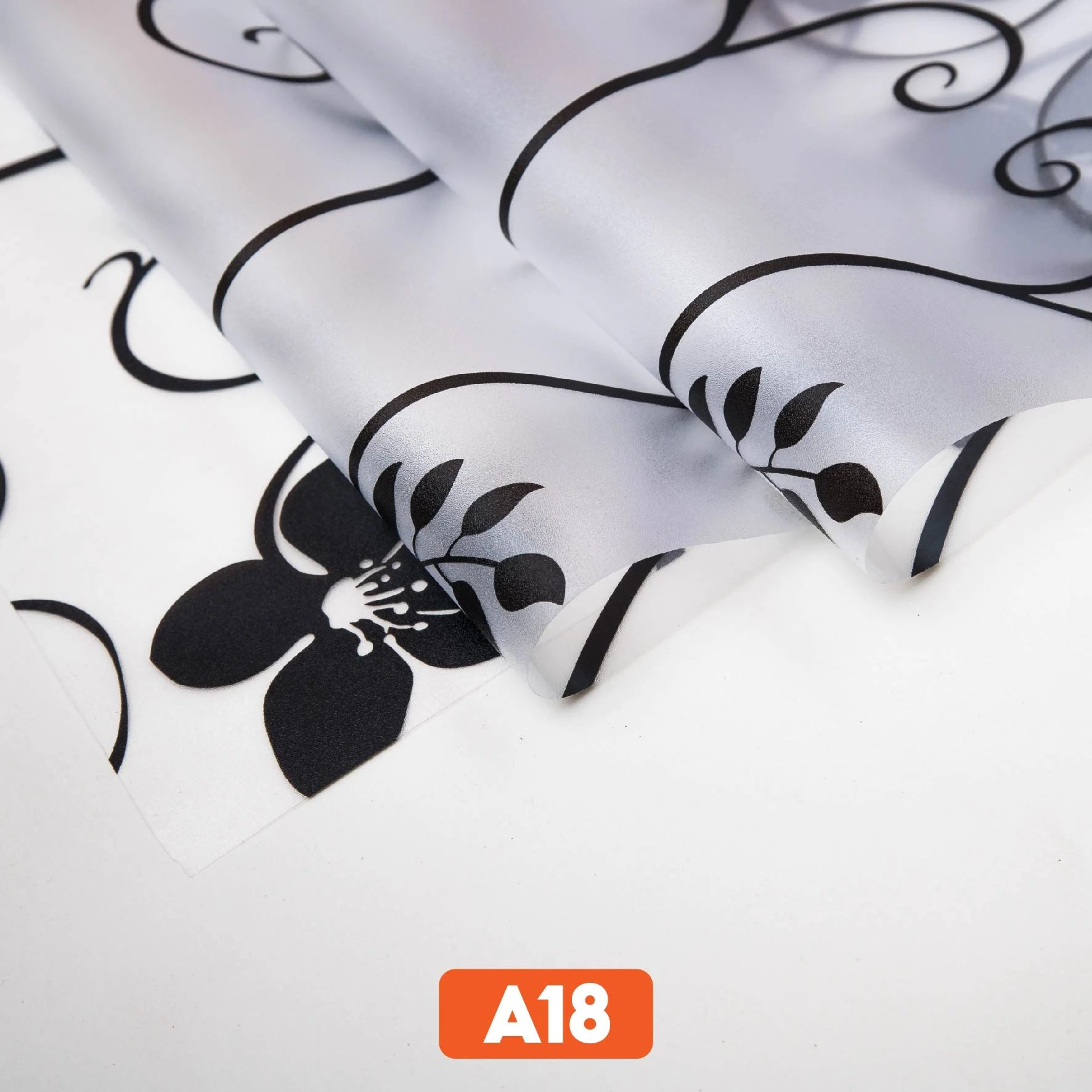 Phá cách và đầy cuốn hút, mẫu decal dán kính mờ A18 là tuyên ngôn cho một không gian sống hiện đại và đầy tính nghệ thuật. Với họa tiết hoa dây màu đen được khắc họa đầy tinh tế trên nền trắng mờ, sản phẩm này tạo ra một sự tương phản thị giác mạnh mẽ nhưng vẫn giữ được nét mềm mại, duyên dáng. Đây là lựa chọn hoàn hảo để kiến tạo một điểm nhấn sang trọng, vừa đảm bảo sự riêng tư, vừa thể hiện gu thẩm mỹ khác biệt của gia chủ.