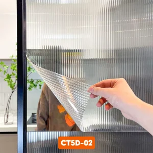 Mẫu decal dán kính 3D mã CT5D-02 là dòng sản phẩm cao cấp mô phỏng hoàn hảo cấu trúc kính sọc (fluted glass) đang cực kỳ thịnh hành trong thiết kế nội thất hiện đại. Với họa tiết vân sóng dọc nhỏ tinh xảo, sản phẩm mang đến vẻ đẹp tối giản, sang trọng và khả năng bắt sáng tuyệt vời cho không gian.